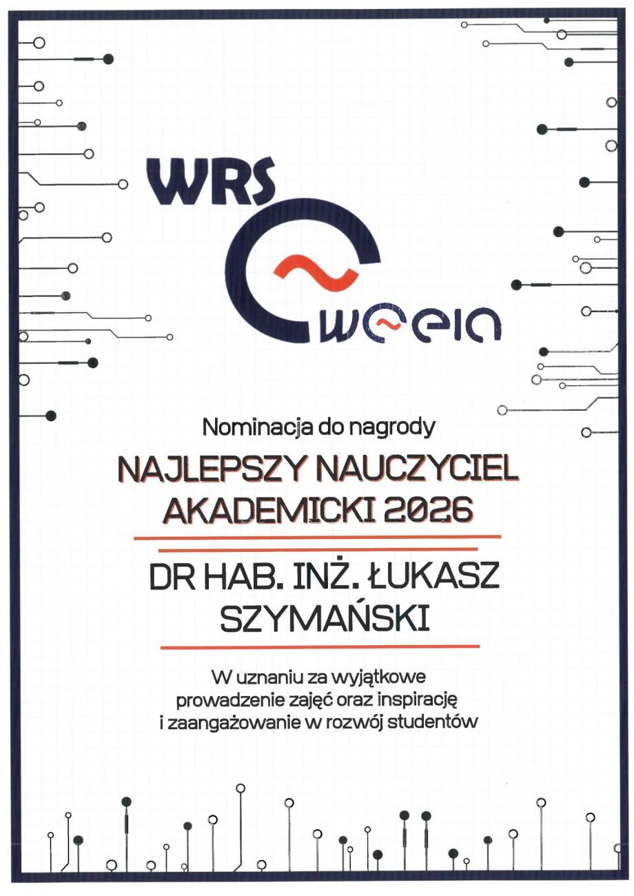 🏆 Najlepszy Nauczyciel Akademicki 2026 - dr inż. Łukasz Wąs,