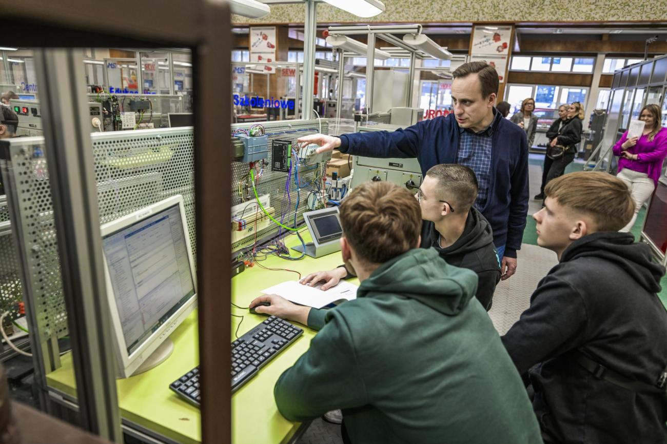 Spotkanie rozpoczęło się prezentacją oferty edukacyjnej PŁ, a następnie uczniowie – podzieleni na dwie grupy po 15 osób – uczestniczyli w warsztatach realizowanych równolegle w Laboratorium Mechatroniki oraz w Pracowni Informatycznej Instytutu: